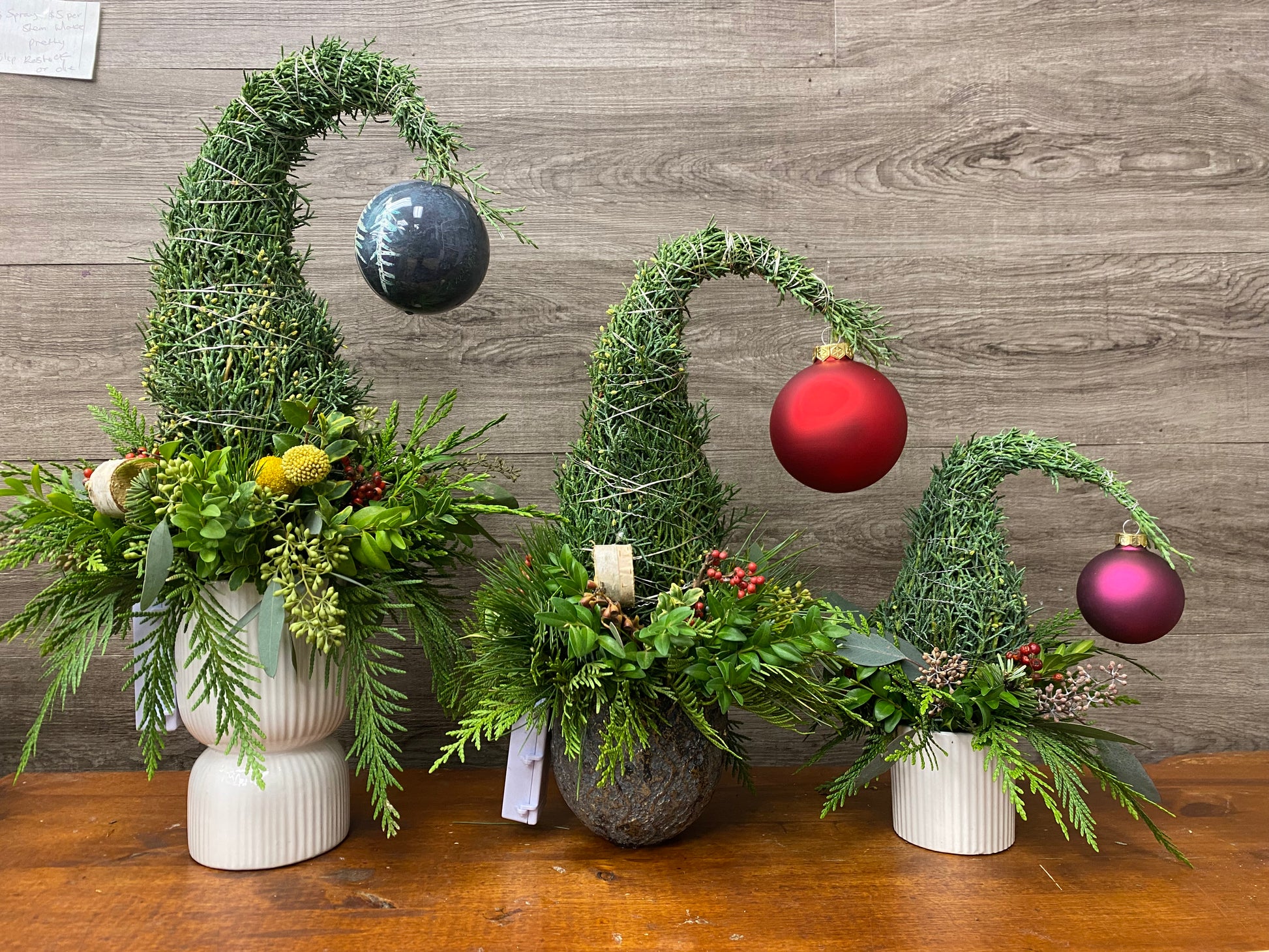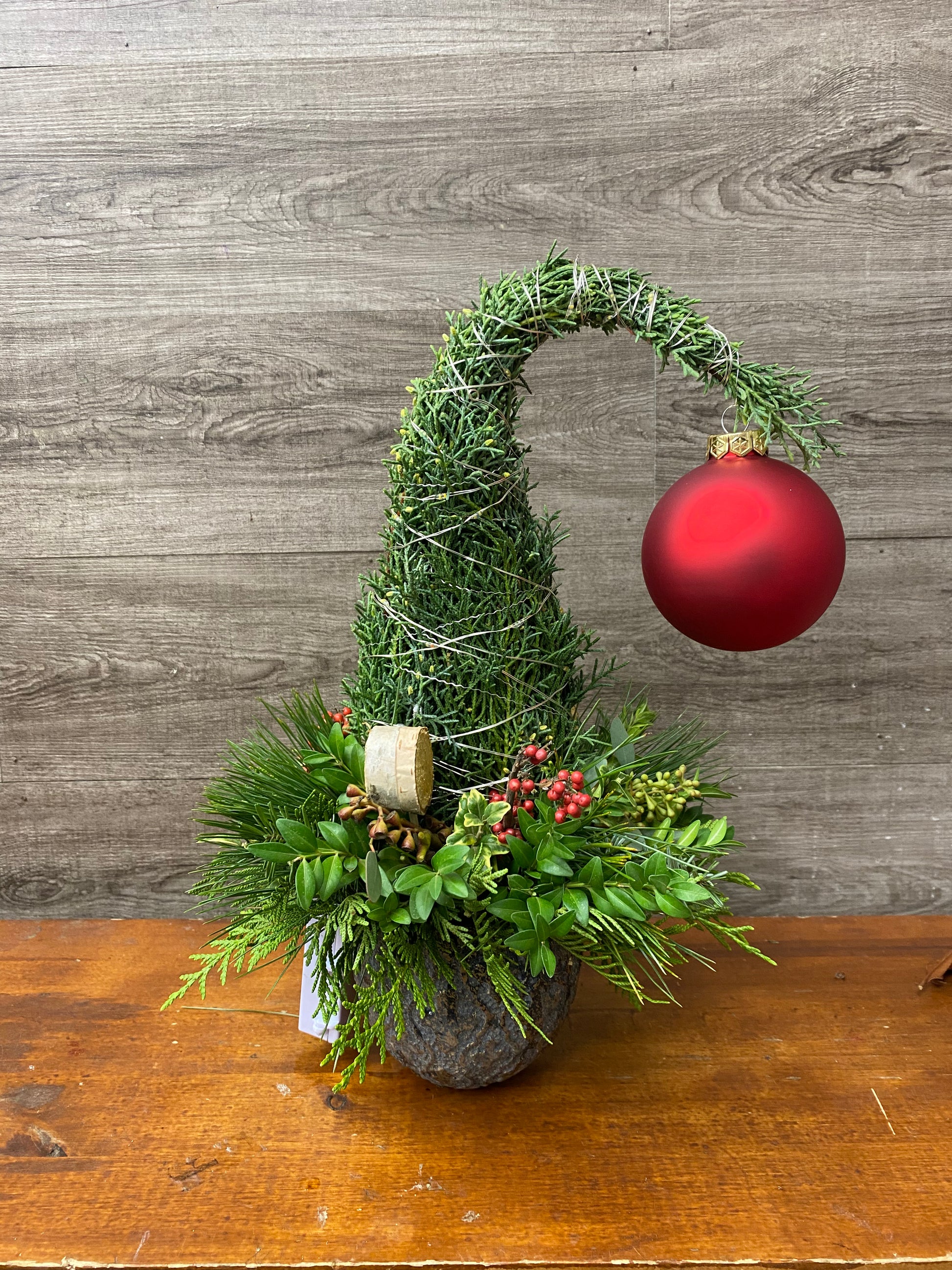 Deck your halls with this classic Grinch-inspired tree arrangement! This festive tree is hand-arranged with multicoloured battery-powered lights, so it'll brighten up your holiday season without extra cords and plugs! Whether you're a fan of Dr. Seuss or just looking for holiday spirit, this tree is perfect for adding a dash of whimsy to your decor! Ornament and pot colours may vary.